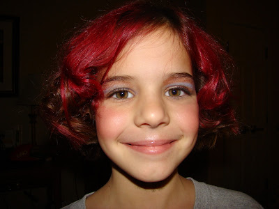 DYED HER HAIR ELECTRIC RED (and curled it and put on hypoallergenic makeup, but that was only temporary)!